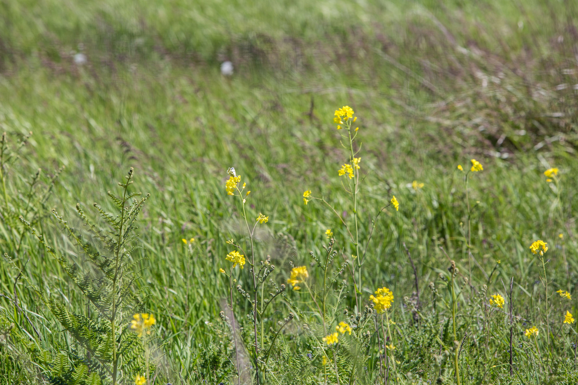 - Perching on mustard blossom